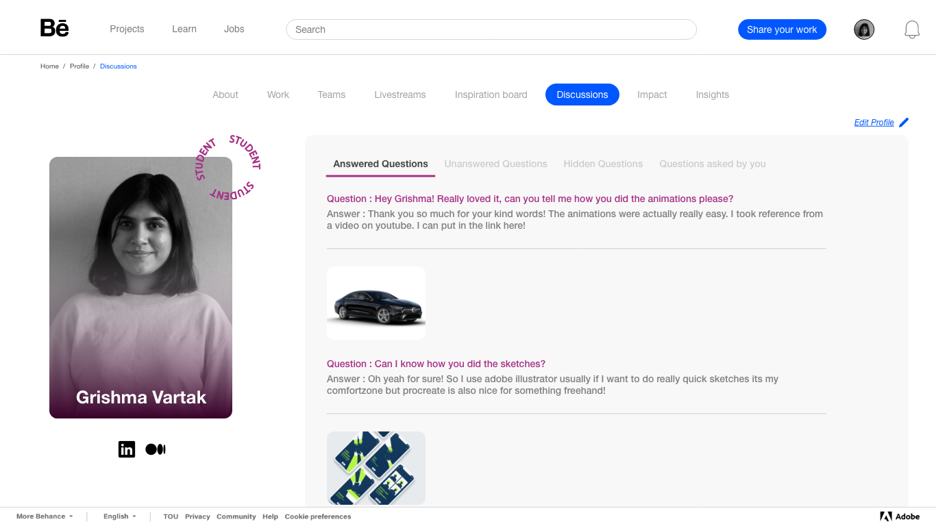 Views and appreciations have been rephrased and combined in a positive language called “Impacts”. Every visitor can view a creators impact score. Impact score increases when someone views the user’s projects and add them to a moodboard.
